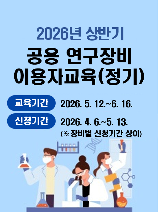 2026년 상반기 공용 연구장비 이용자교육(정기)(장비별 신청기간 상이, 세부사항 본문 참조)