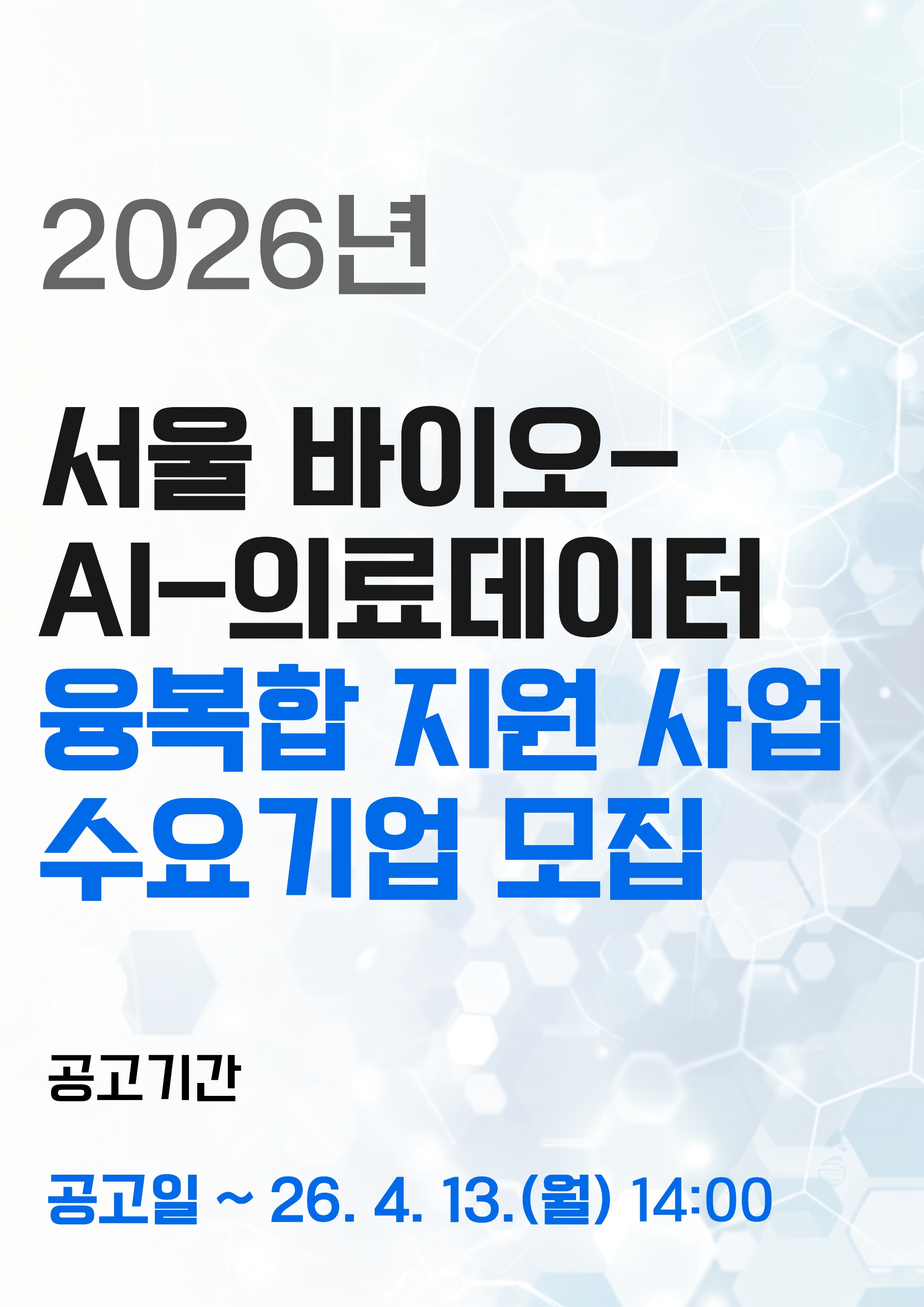 2026년 서울 바이오-AI-의료데이터 융복합 지원 사업 수요기...