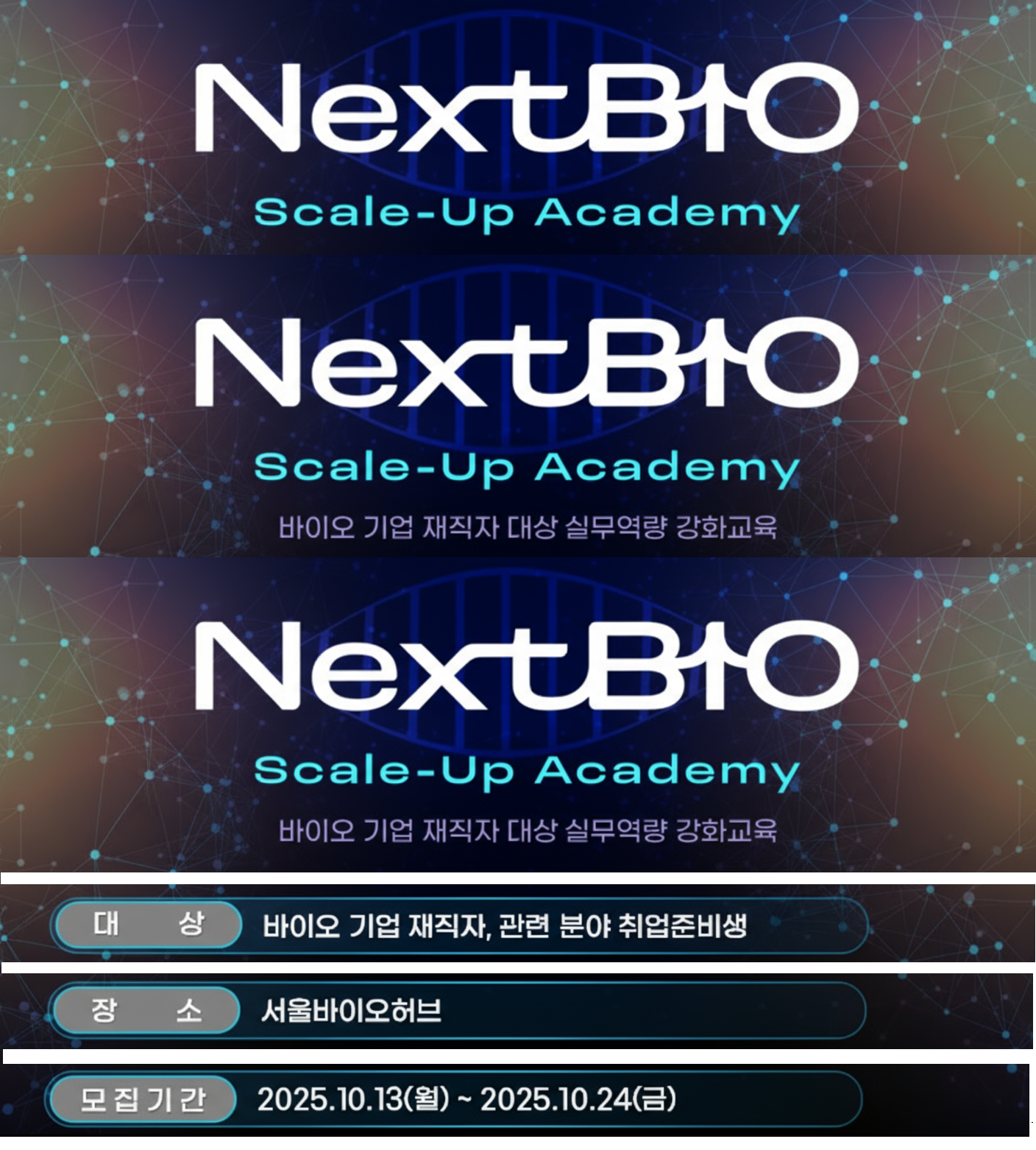 2025 NextBio Scale-Up Academy 신청 안내(바이오 기업 재직자 대상 실무역량 강화교육)