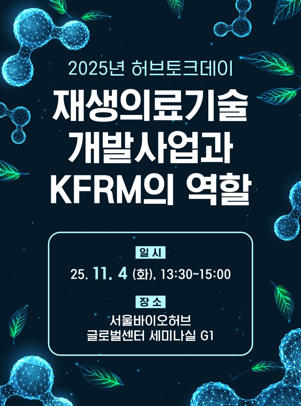 2025년 허브토크데이: “재생의료기술개발사업과 KFRM의 역할” 참가 신청