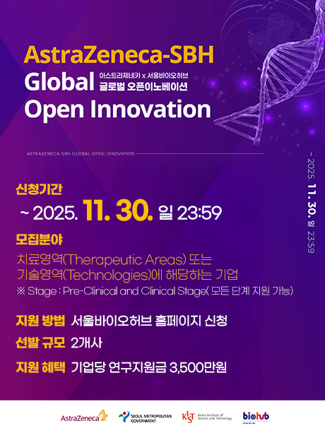 「2025 아스트라제네카-서울바이오허브 글로벌 오픈이노베이션」참여기업 모집 공고