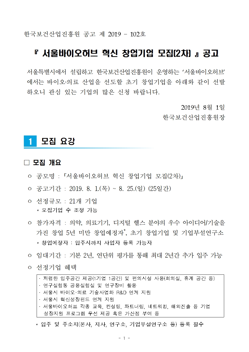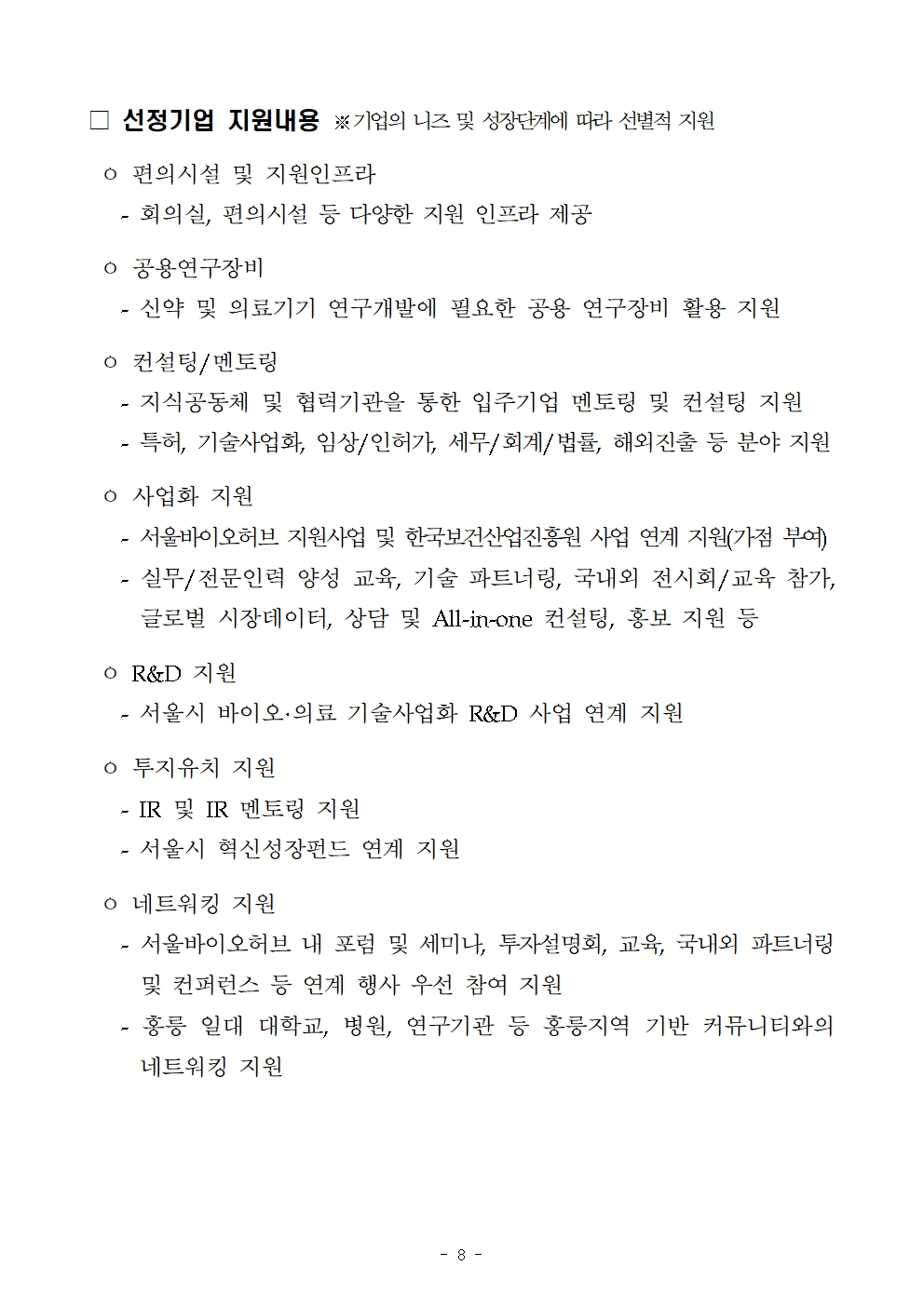 입주기업 모집 서울바이오허브 혁신 창업기업 모집(2차) 공고
