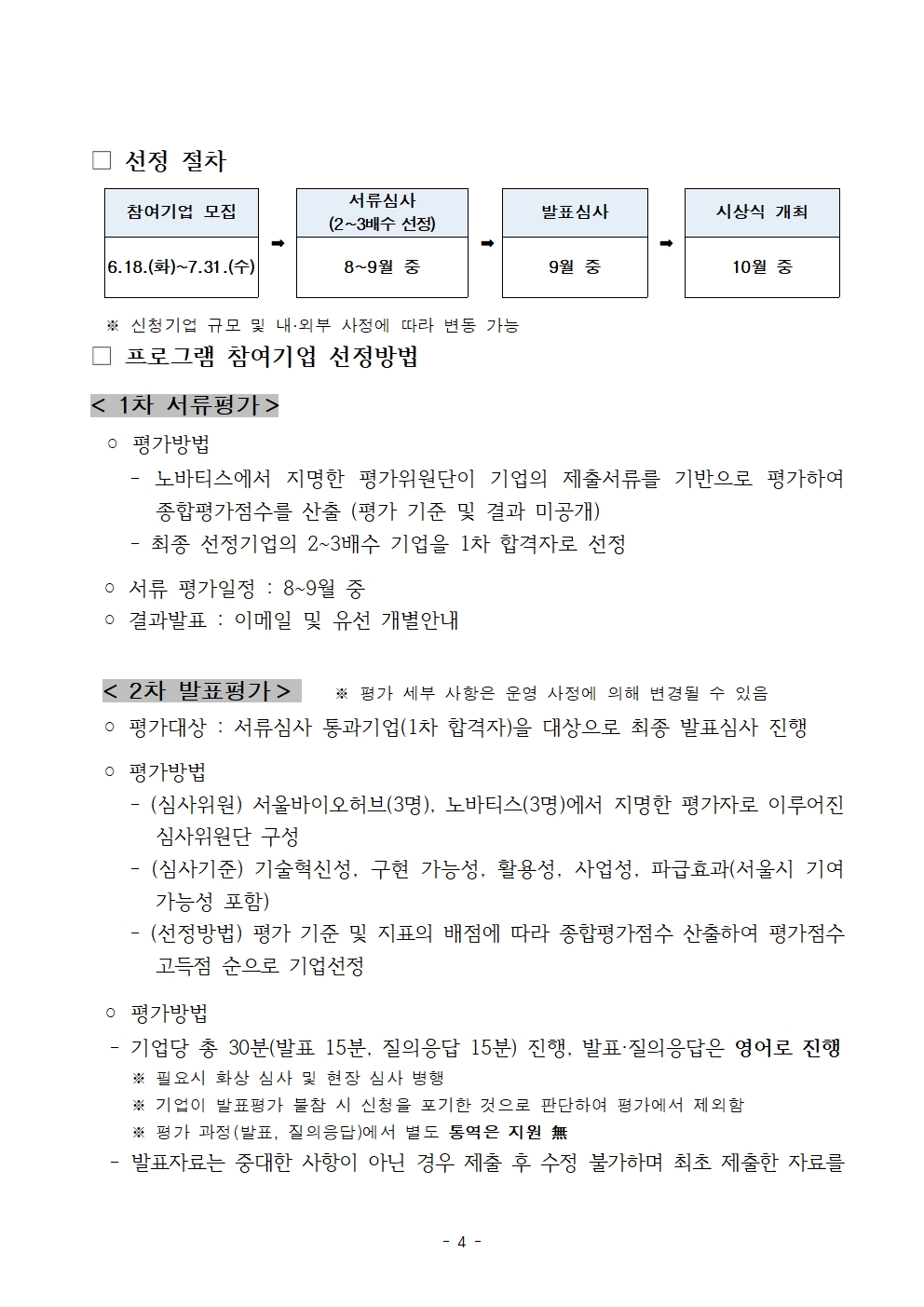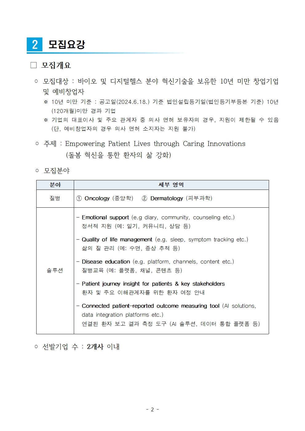 ◦ 선발기업 수 : 2개사 이내