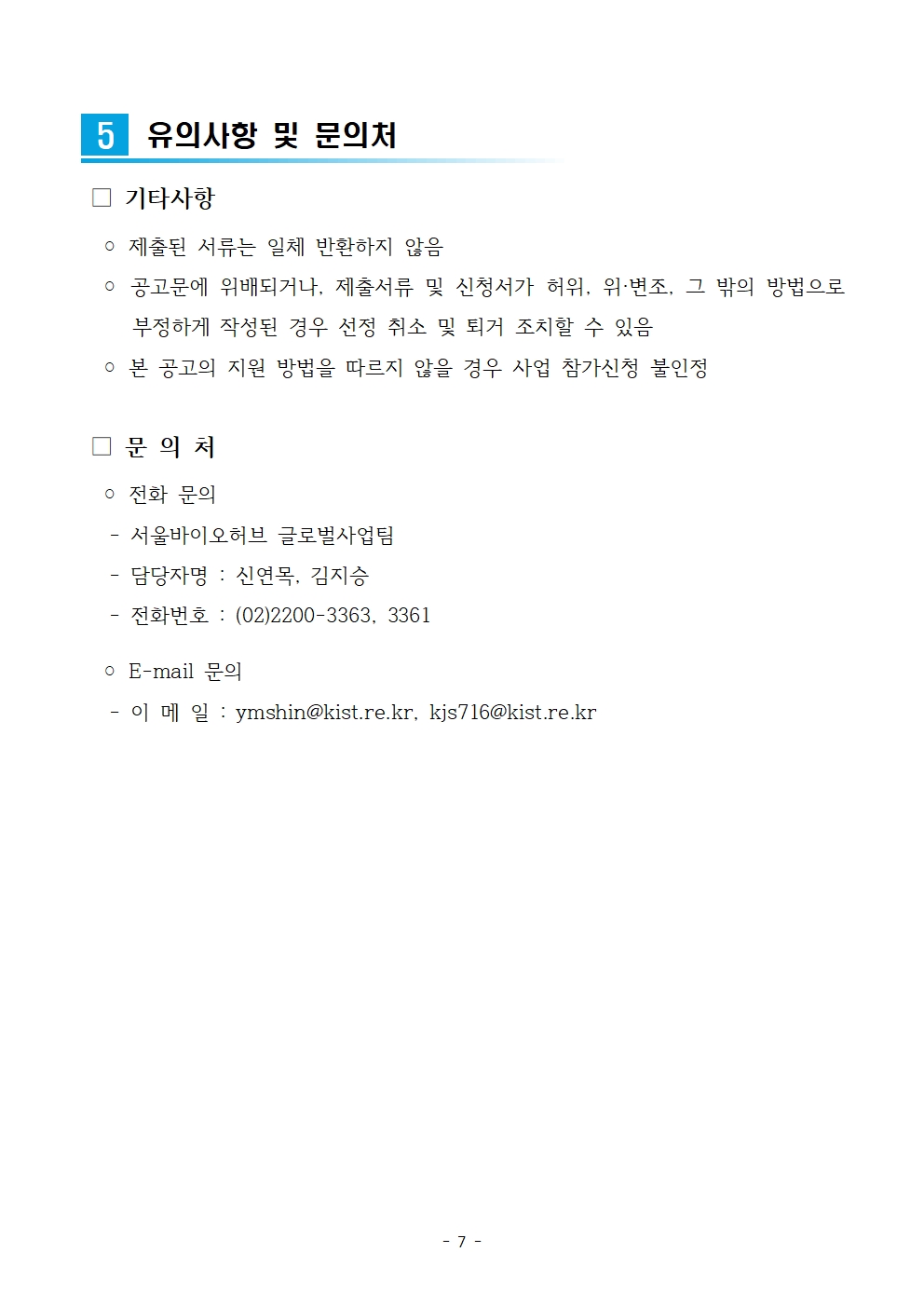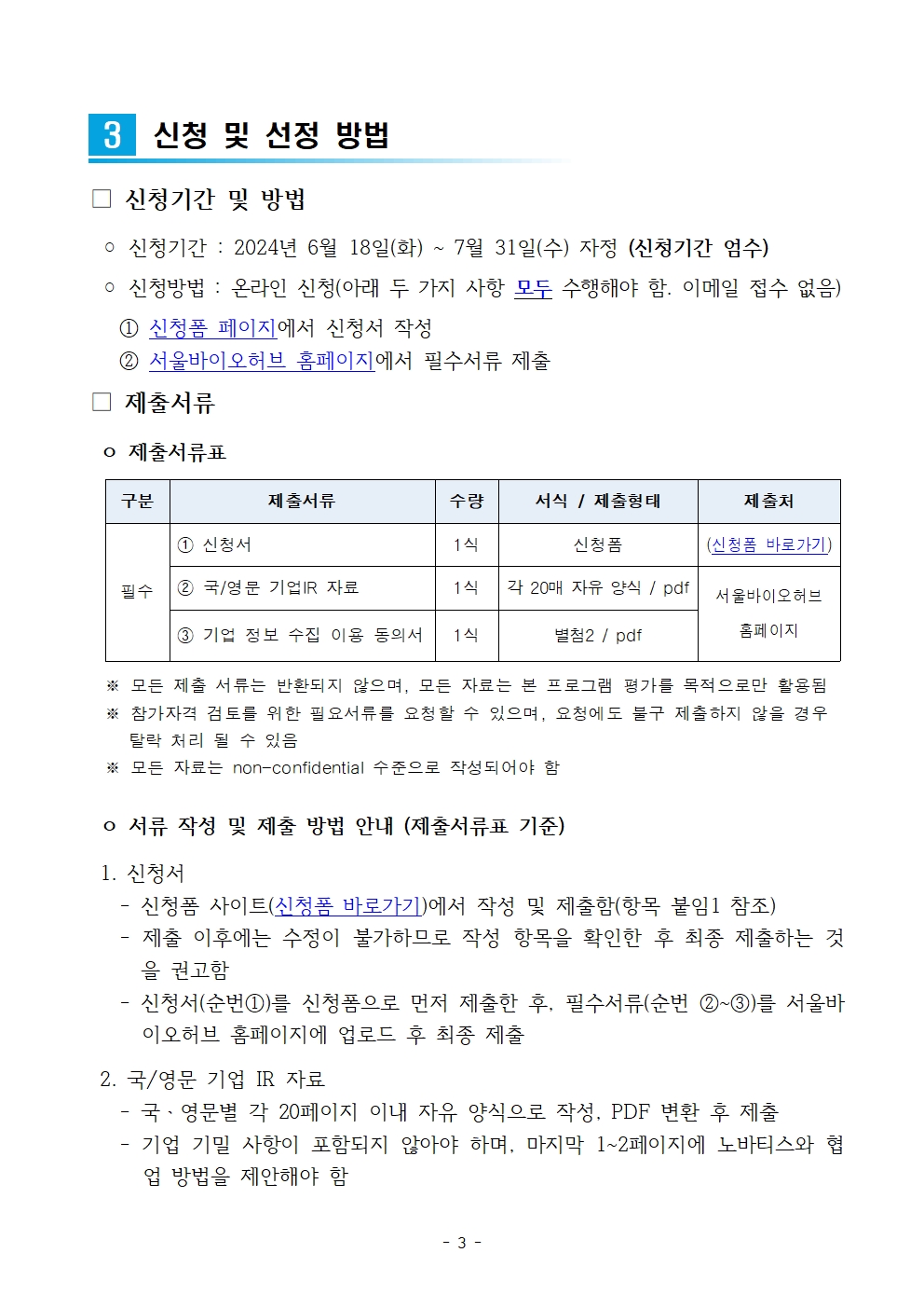 ② 서울바이오허브 홈페이지에서 필수서류 제출 *IR자료(국/영문), 붙임2 제출