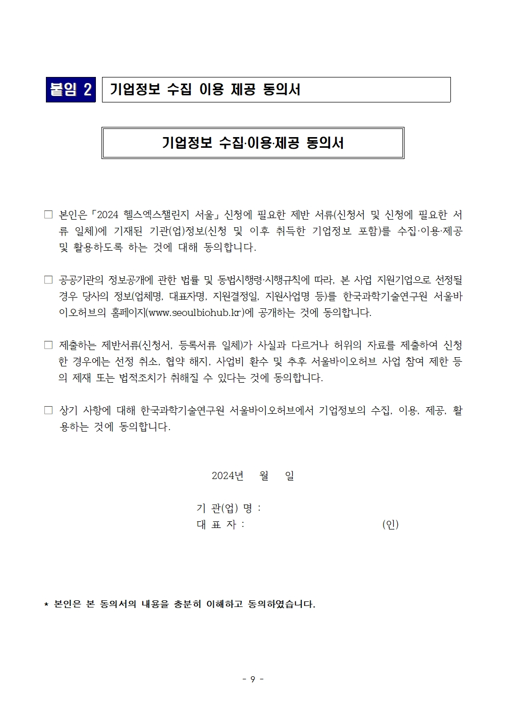 서울특별시가 조성하고 한국과학기술연구원·고려대학교가 운영하는 ‘서울바이오허브’에서 국내 유망 바이오 디지털헬스 기업의 글로벌 시장 진출 경쟁력 강화를 위해 「2024 헬스엑스챌린지 서울」을 운영합니다. 다음과 같이 프로그램의 참여기업을 모집하오니 관심 있는 기업의 많은 신청 바랍니다.