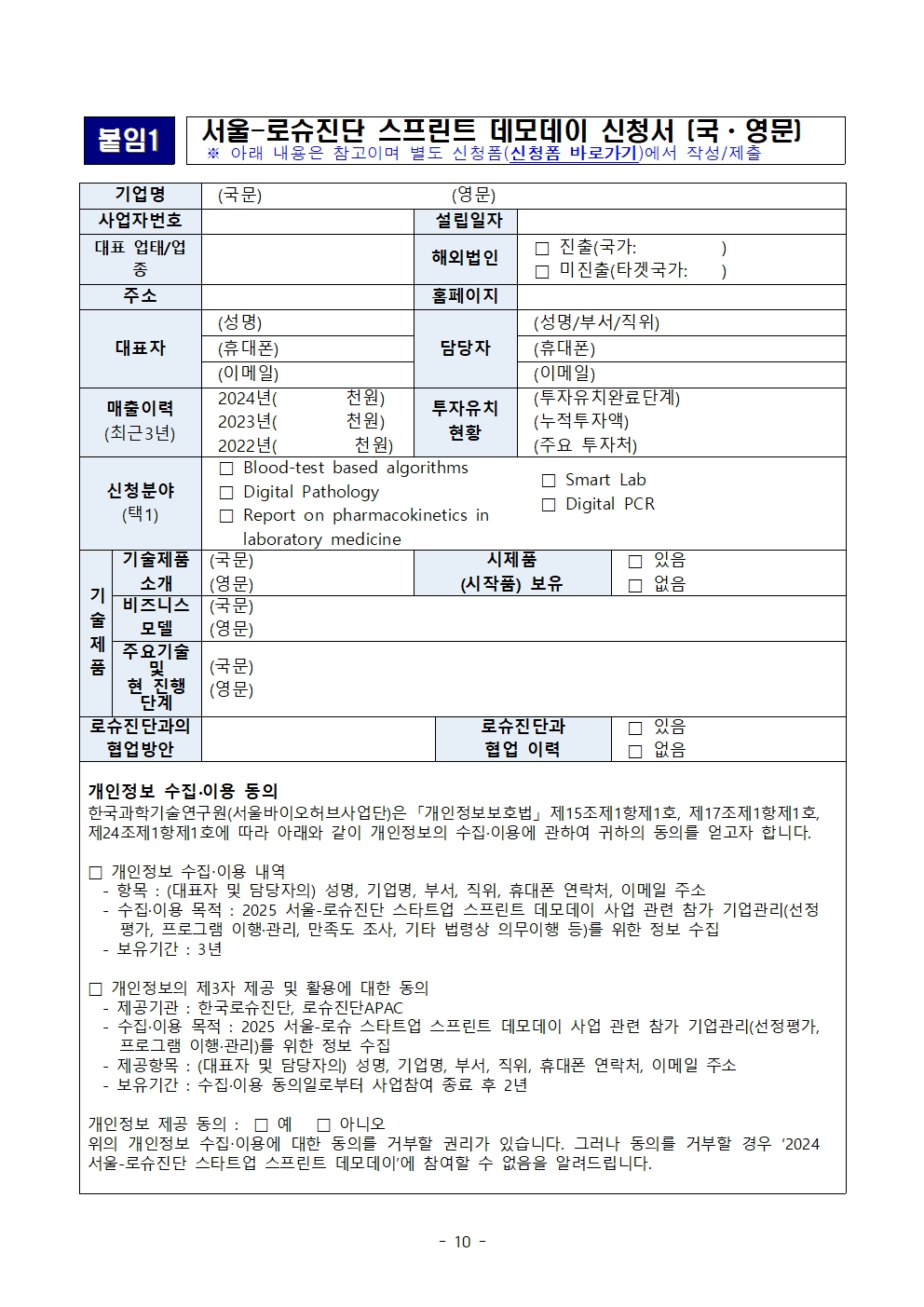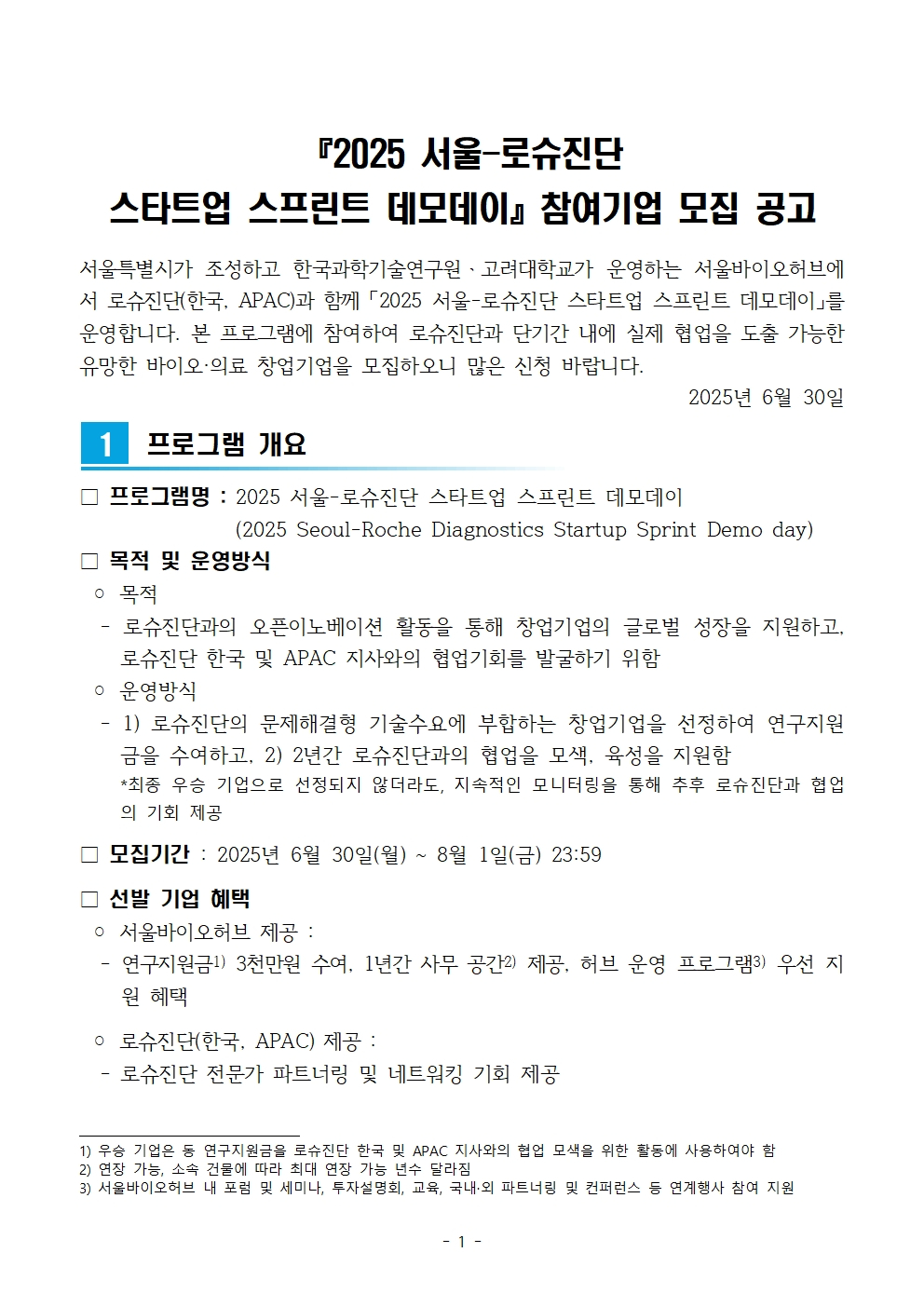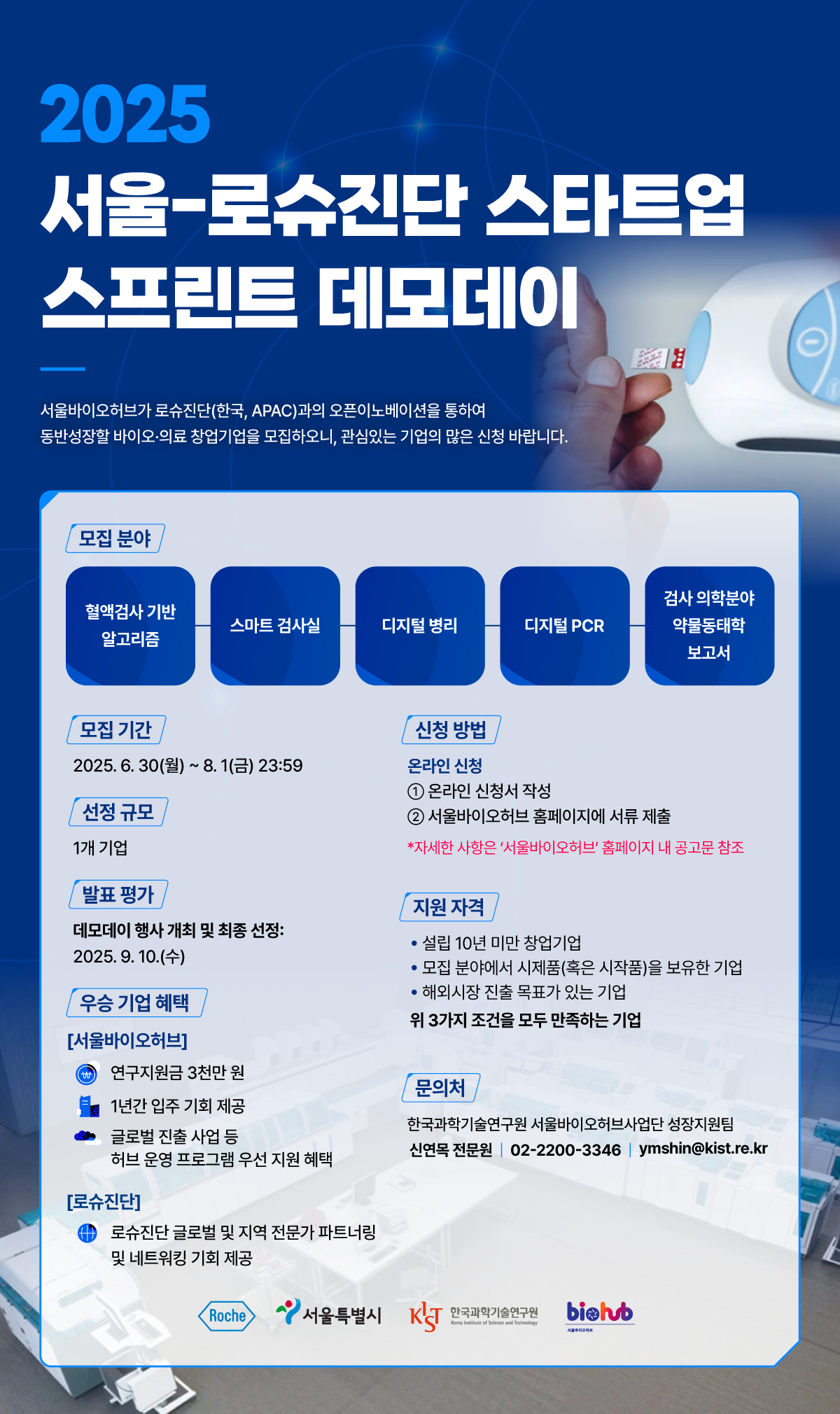 행사/세미나 2025 서울-로슈진단 스타트업 스프린트 데모데이 참여기업 모집