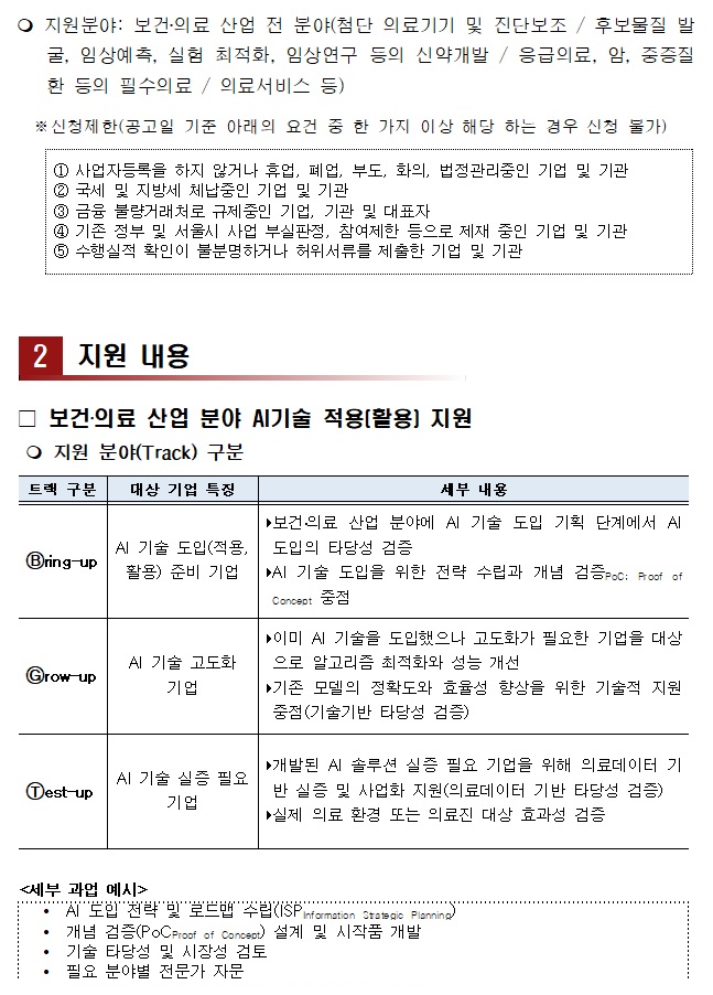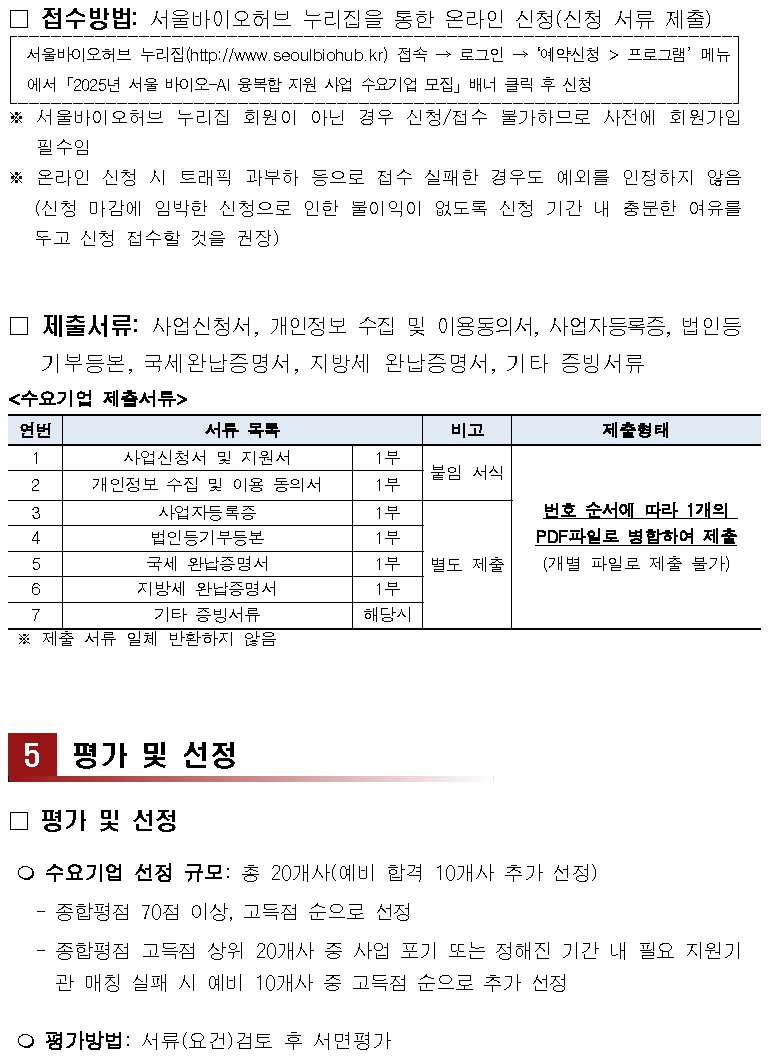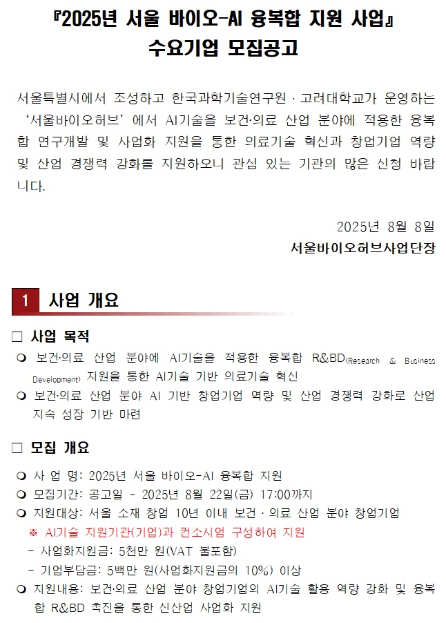 기타 2025년 서울 바이오-AI 융복합 지원 사업 수요기업 모집 공고