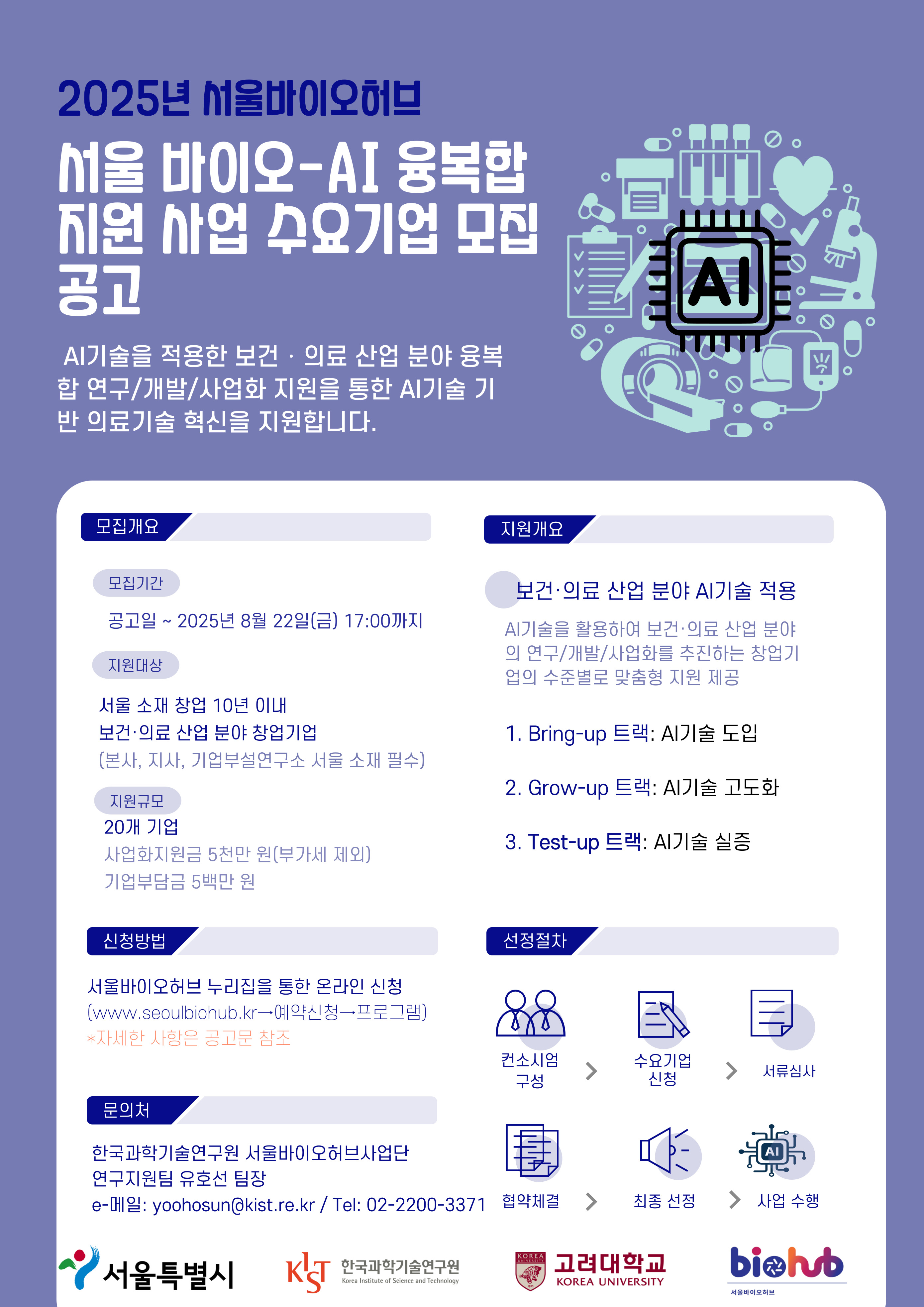 서울바이오허브 누리집(온라인) / 2025. 8. 8.(금) ~ 22.(금)