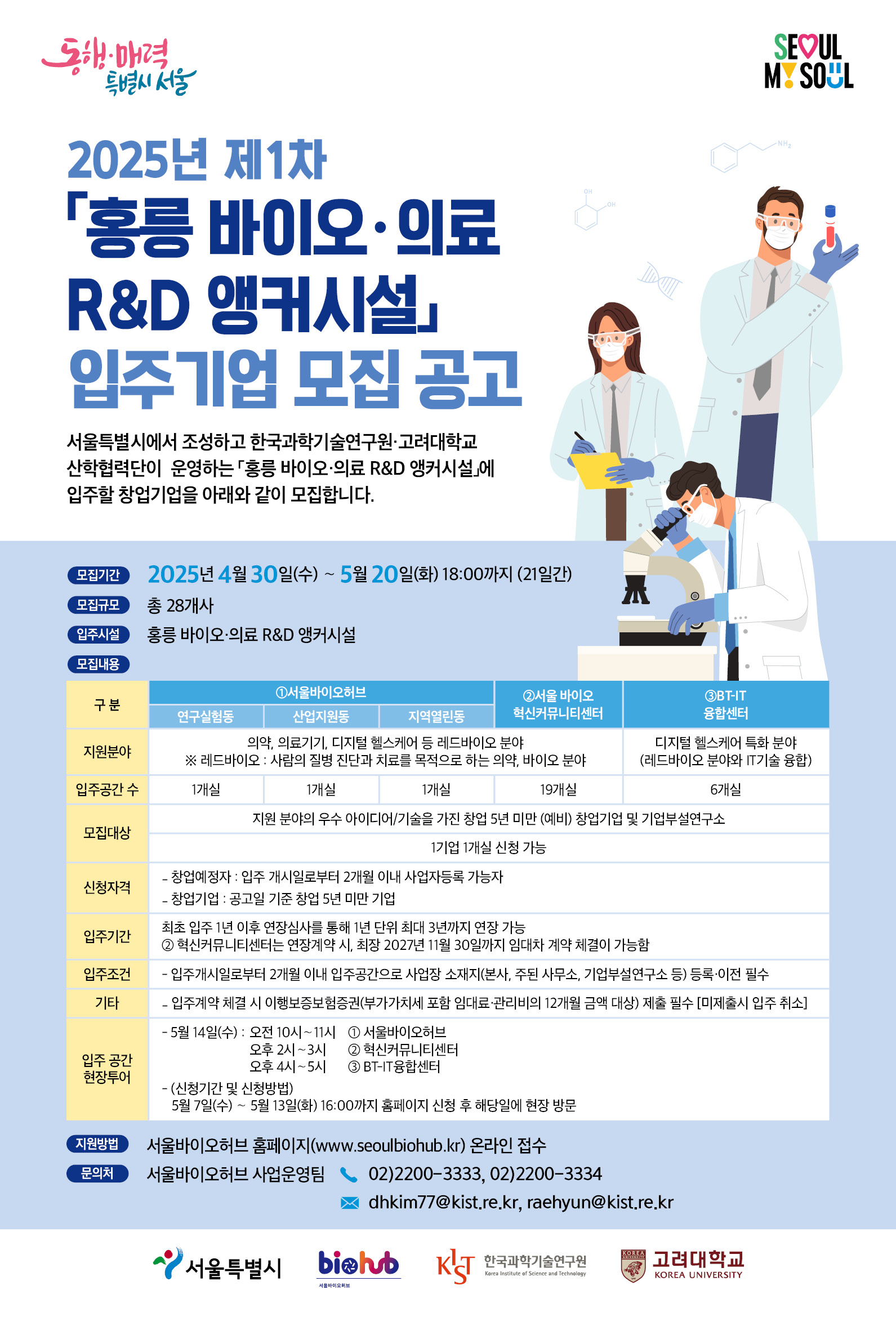 입주기업 모집 2025년 제1차 홍릉 바이오·의료 R&D 앵커시설 입주기업 모집 공고
