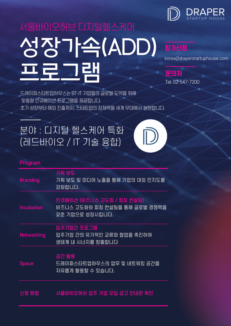 의약, 의료기기, 디지털헬스케어 등 레드바이오 분야 창업기업 및 기업부설연구소(모집공고 참조)