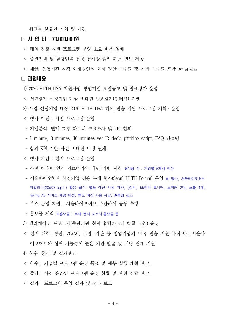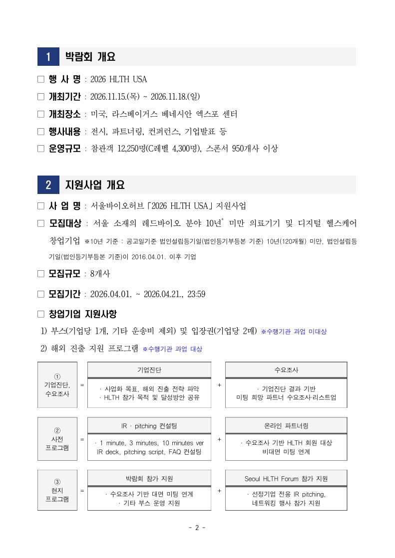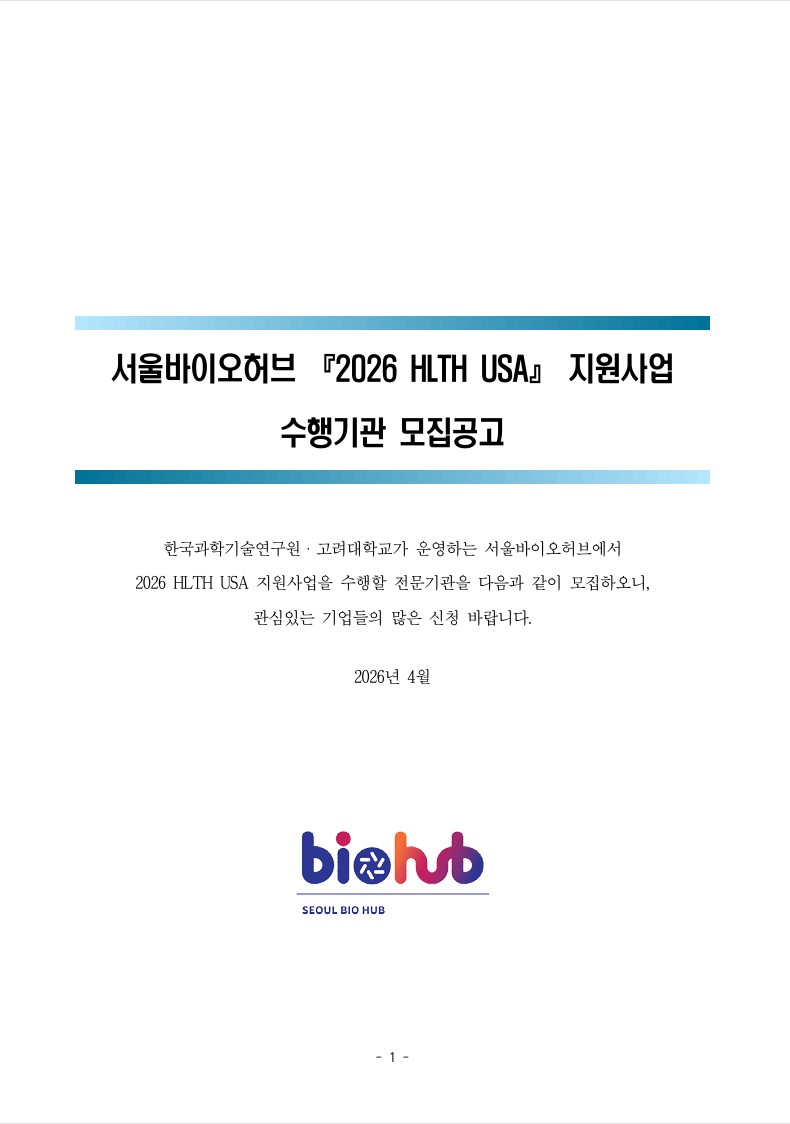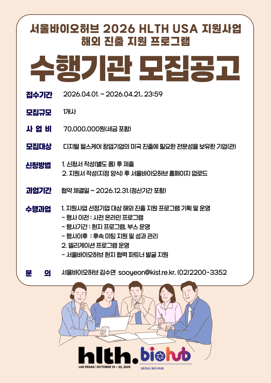 행사/세미나 서울바이오허브 2026 HLTH USA 지원사업 수행기관 모집공고