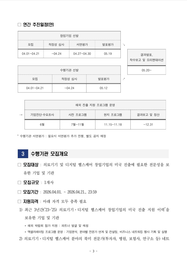 의료기기 및 디지털 헬스케어 창업기업의 미국 진출에 필요한 전문성을 보유한 기업 및 기관